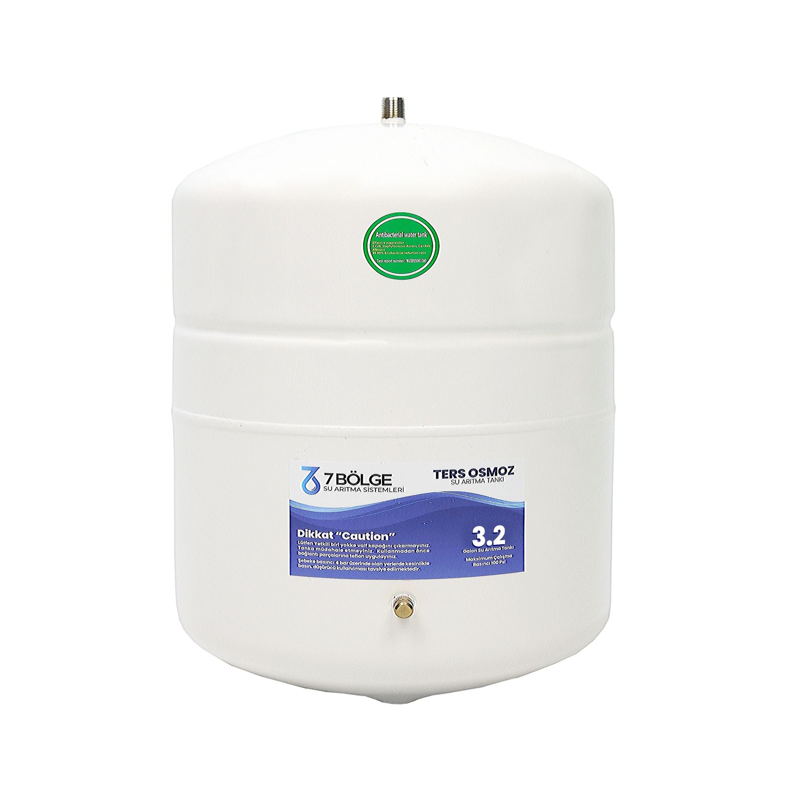 3.2 galon su arıtma tankı, ev tipi ters osmoz (RO) sistemleri için geliştirilmiş kompakt ve yüksek performanslı bir su depolama çözümüdür. 12 litrelik toplam hacmi sayesinde aile kullanımı için günlük içme suyu ihtiyacını rahatlıkla karşılar. İç kısmında bulunan gıda sınıfı diyafram membran, suyun metal yüzeyle temasını engelleyerek hijyenik depolama sağlar.